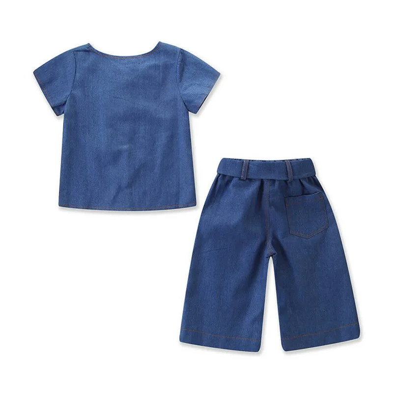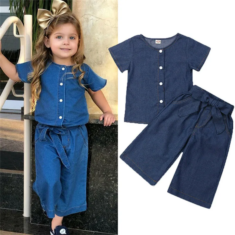 Good Price of summer Toddler Children Girl Clothes Set roupas 2019 Kids Baby Girl Short Sleeve Tops Shirt Denim L