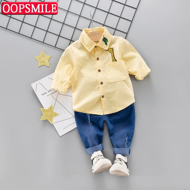Best Offer for Toddler Baby Boys Clothing Sets 2019 Spring Infant Clothes Suits Casual Style Giraffe Shirt Jeans P