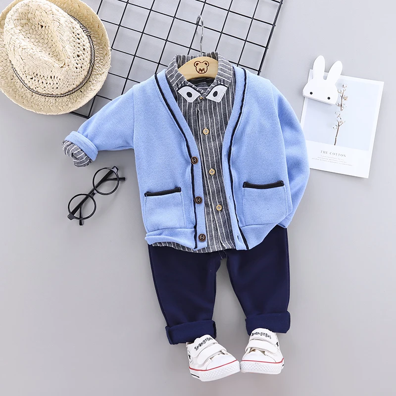 Special Price of Toddler Baby Boys Clothing Sets 3PCS Infant Boys Clothes Outfits Cardigan Coat + Shirt +Jeans Kids